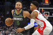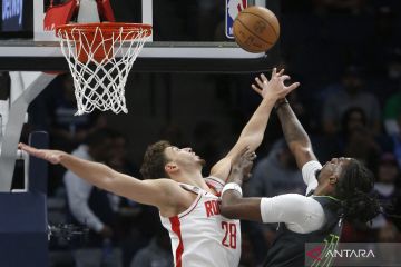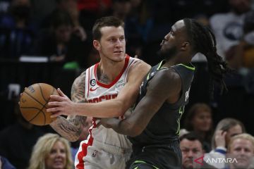 Pebola basket Minnesota Timberwolves Kyle Anderson (5) menggiring bola dibayangi pemain Houston Rockets Kenyon Martin Jr. saat laga NBA di Target Center, Minneapolis, Minnesota, AS, Sabtu (5/11/2022). ANTARA FOTO/REUTERS/Bruce Kluckhohn-USA TODAY Sports/foc.