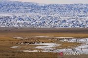 Kawanan ternak mencari makan di sebuah padang rumput musim dingin di area Gunung Barlik,Yumin, Daerah Otonom Uighur Xinjiang, China barat laut, Jumat (4/11/2022). Penggembala di wilayah Yumin memindahkan ternak mereka ke padang rumput musim dingin di sejumlah lembah dan cekungan di area Gunung Barlik untuk melindungi sapi dan domba dari angin saat cuaca menjadi lebih dingin. ANTARA FOTO/Xinhua/Chen Shuangxi/rwa.