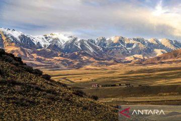 Pemandangan padang rumput musim dingin di area Gunung Barlik, wilayah Yumin, Daerah Otonom Uighur Xinjiang, China barat laut, Jumat (4/11/2022). Penggembala di wilayah Yumin memindahkan ternak mereka ke padang rumput musim dingin di sejumlah lembah dan cekungan di area Gunung Barlik untuk melindungi sapi dan domba dari angin saat cuaca menjadi lebih dingin. ANTARA FOTO/Xinhua/Chen Shuangxi/rwa.