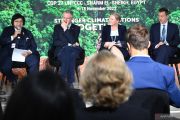Menteri Lingkungan Hidup dan Kehutanan Siti Nurbaya (kiri) bersama Menteri Negara untuk Asia, Energi, Iklim, dan Lingkungan Inggris Lord Goldsmith (kedua kiri), Menteri Pembangunan Internasional Norwegia Tvinnereim (kedua kanan), dan Deputi Utusan Khusus Presiden Amerika Serikat untuk Iklim Rick Duke (kanan) berdiskusi pencegahan perubahan iklim di Paviliun Indonesia pada konferensi perubahan iklim COP27 UNFCCC di Sharm El Sheikh, Mesir, Rabu (9/11/2022). Pejabat senior tiga Negara itu mengapresiasi komitmen Indonesia yang lebih ambisius melalui agenda Indonesia's FOLU Net Sink 2030. ANTARA FOTO/Saptono/hp.
