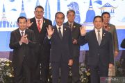 Presiden Joko Widodo (tengah) mengikuti sesi foto bersama dengan Perdana Menteri Kamboja Hun Sen (kiri), Ketua Badan Kerjasama Antar Parlemen (BKSAP) DPR Fadli Zon (kiri belakang) serta kepala negara/pemerintahan dan perwakilan perlemen negara-negara anggota ASEAN pada pertemuan para pemimpin ASEAN dengan perwakilan ASEAN Inter-Parliament Assembly (AIPA) di Hotel Sokha, Phnom Penh, Kamboja, Kamis (10/11/2022). Pertemuan tersebut merupakan rangkaian dari Konferensi Tingkat Tinggi (KTT) ke-40 dan ke-41 ASEAN serta KTT terkait lainnya. ANTARA FOTO/Hafidz Mubarak A/foc.