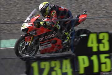 Pebalap Aruba.it-Ducati Alvaro Bautista memacu kecepatan saat pemanasan jelang Race 2 WSBK Mandalika 2022 di Pertamina Mandalika International Street Circuit, KEK Mandalika, Desa Kuta, Kecamatan Pujut, Praya, Lombok Tengah, NTB, Minggu (13/11/2022). ANTARA FOTO/Puspa Perwitasari/foc.