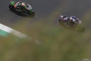 Pebalap Pata Yamaha With Brixx WorldSBK Toprak Razgatlioglu (kanan) beradu kecepatan dengan pebalap Kawasaki Racing Team WorldSBK Jonathan Rea (kiri) pada Superpole Race WSBK Mandalika 2022 di Pertamina Mandalika International Street Circuit, KEK Mandalika, Desa Kuta, Kecamatan Pujut, Praya, Lombok Tengah, NTB, Minggu (13/11/2022). Toprak menjadi yang tercepat disusul Jonathan Rea dan pebalap Pata Yamaha With Brixx WorldSBK Andrea Locatelli. ANTARA FOTO/Puspa Perwitasari/foc.