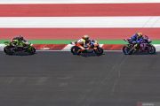 Pembalap Pata Yamaha With Brixx WorldSBK Andrea Locatelli (kanan) memacu kecepatan bersama pembalap Motocorsa Racing Axel Bassani (tengah) dan pembalap tim Kawasaki Racing WorldSBK Alex Lowes (kiri) saat mengikuti sesi superpole race di Pertamina Mandalika International Street Circuit di KEK Mandalika, Desa Kuta, Kecamatan Pujut, Praya, Lombok Tengah, NTB, Minggu (13/11/2022). Toprak Razgatlioglu menjadi yang terdepan untuk superpole race diikuti pembalap Tim Kawasaki Racing WorldSBK Jonathan Rea di posisi kedua dan pembalap Pata Yamaha With Brixx WorldSBK Andrea Locatelli di posisi ketiga. ANTARA FOTO/Ahmad Subaidi/foc.
