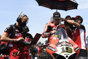 Pebalap Aruba.it-Ducati Alvaro Bautista bersiap untuk Superpole Race WSBK Mandalika 2022 di Pertamina Mandalika International Street Circuit, KEK Mandalika, Desa Kuta, Kecamatan Pujut, Praya, Lombok Tengah, NTB, Minggu (13/11/2022). Pebalap Pata Yamaha With Brixx WorldSBK Toprak Razgatlioglu menjadi yang tercepat disusul pebalap Kawasaki Racing Team WorldSBK Jonathan Rea dan pebalap Pata Yamaha With Brixx WorldSBK Andrea Locatelli. ANTARA FOTO/Puspa Perwitasari/foc.