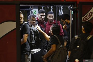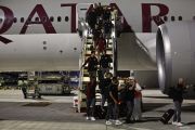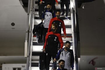 tim sepak bola Qatar tiba di Doha sebelum berlangsungnya Piala Dunia 2022, di Bandara Hamad International Airport, Doha, Qatar, Minggu (13/11/2022). Piala Dunia 2022 akan berlangsung di Qatar mulai 20 November hingga 18 Desember 2022. ANTARA FOTO/ Reuters-Hamad I Mohammed/hp.