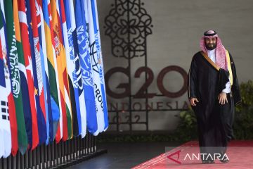 Putra Mahkota Arab Saudi Pangeran Mohammed bin Salman tiba di lokasi KTT G20 di Nusa Dua, Bali, Selasa (15/11/2022). ANTARA FOTO/Media Center G20 Indonesia/Akbar Nugroho Gumay/aww.