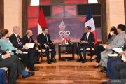 Presiden Joko Widodo (kanan) melakukan pertemuan bilateral dengan Presiden Prancis Emmanuel Macron di sela penyelenggaraan KTT G20 Indonesia di Nusa Dua, Bali, Selasa (15/11/2022). ANTARA FOTO/Media Center G20 Indonesia/Sigid Kurniawan/hp.