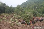 Sejumlah tim SAR gabungan melakukan evakuasi korban longsor di Blembem, Candirejo, Semin, Gunungkidul, DI Yogyakarta, Sabtu (19/11/2022). Hujan deras yang mengguyur sejak Jumat (19/11) siang di daerah tersebut mengakibatkan longsor dan dua warga masih dalam pencarian. ANTARA FOTO/Hendra Nurdiyansyah/aww.