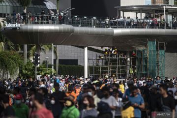 Sejumlah warga memadati Hari Bebas Kendaraan Bermotor (HBKB) di kawasan Bundaran HI, Jakarta, Minggu (20/11/2022). Kementerian Kesehatan menyebutkan bahwa peningakatan kasus konfrimasi COVID-19 disebabkan oleh munculnya subvarian baru dan menghimbau masyarakat untuk memperketat protokol kesehatannya serta vaksin boster. ANTARA FOTO/Aprillio Akbar/hp.