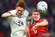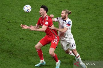 Pemain timnas Amerika Serikat Josh Sargent (kiri) berebut bola dengan pemain timnas Wales Chris Mepham pada pertandingan Grup B Piala Dunia Qatar 2022 di Stadion Ahmad Bin Ali, Al Rayyan, Qatar, Selasa (22/11/2022). Amerika Serikat bermain imbang 1-1 melawan Wales. ANTARA FOTO/REUTERS/Hannah Mckay/wsj.
