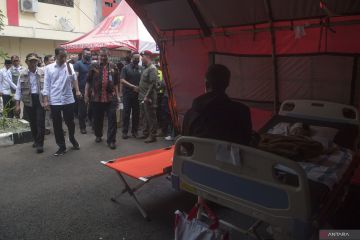 Presiden Joko Widodo (kedua kiri) didampingi Menko PMK Muhadjir Effendi (kiri) meninjau korban gempa bumi magnitudo 5,6 yang masih dirawat di RSUD Sayang, Kabupaten Cianjur, Jawa Barat, Kamis (24/11/2022). Selain mengunjungi RSUD Sayang, Presiden juga mendatangi sejumlah lokasi terdampak bencana untuk memantu progres tanggap darurat pascagempa bumi di Kabupaten Cianjur pada Senin 21 November 2021. ANTARA FOTO/Wahyu Putro A/foc.