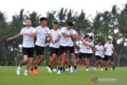 Sejumlah pesepak bola Timnas Indonesia menjalani latihan perdana saat pemusatan latihan di Training Ground Bali United, Pantai Purnama, Gianyar, Bali, Senin (28/11/2022). Timnas Indonesia menjalani pemusatan latihan di Bali sebagai persiapan jelang Piala AFF 2022. ANTARA FOTO/Fikri Yusuf/wsj.
