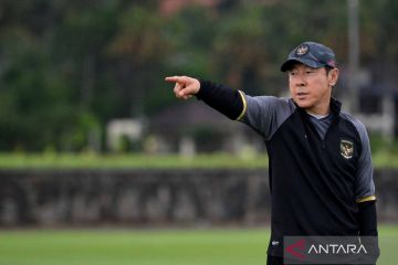 Pelatih Tim Nasional Indonesia Shin Tae-yong memberikan instruksi saat memimpin latihan perdana dalam pemusatan latihan di Training Ground Bali United, Pantai Purnama, Gianyar, Bali, Senin (28/11/2022). Timnas Indonesia menjalani pemusatan latihan di Bali sebagai persiapan jelang Piala AFF 2022. ANTARA FOTO/Fikri Yusuf/wsj.