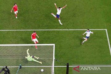 Pemain Inggris Phil Foden mencetak gol kedua ke gawang Wales pada laga Grup B Piala Dunia 2022 di Ahmad Bin Ali Stadium, Al Rayyan, Qatar, Selasa (29/11/2022). The Three Lions lolos ke babak 16 besar setelah melibas Wales 3-0. ANTARA FOTO/REUTERS/Hannah Mckay/rwa.