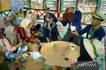 Perwira Penggerak Energi Pertamina menunjukkan teknik ecoprint untuk menghias baju menggunakan tumbuhan/dedaunan di Desa Pangkalan Jambi, Bengkalis, Riau, Selasa (22/11/2022). Rayakan HUT ke-65, PT Pertamina (Persero) mengadakan program Pertamina Perwira Penggerak Energi untuk Negeri di Bengkalis, Riau, pada 22-24 November 2022. ANTARA/HO/Pertamina/pras.