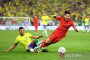Pemain Brazil Casemiro berebut bola dengan pemain Korsel Lee Kang-in pada pertandingan babak 16 besar Piala Dunia 2022 di Stadium 974, Doha, Qatar, (5/12/2022). Brazil melibas Korsel 4-1 dan melaju ke perempat final Piala Dunia 2022 melawan Kroasia. ANTARA FOTO/REUTERS/Carl Recine/aww.