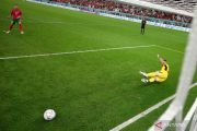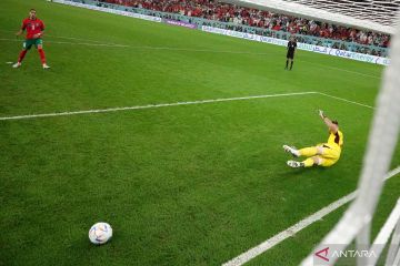 Pesepak bola Maroko Abdelhamid Sabiri (kiri) berhasil mencetak gol dari titik penalti ke gawang Spanyol yang dijaga penjaga gawang Unai Simon dalam laga babak 16 besar Piala Dunia 2022, di Stadion Education City, Al Rayyan, Qatar, Selasa (6/12/2022), Maroko berhasil melaju ke perempat final setelah kalahkan Spanyol 3-0 lewat adu penalti. ANTARA FOTO/Reuters-Matthew Childs/hp.