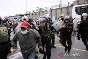 Pengunjuk rasa dan polisi bentrok setelah Kongres memilih untuk menggulingkan Presiden Peru Pedro Castillo di Lima, Peru, Rabu (7/12/2022). ANTARA FOTO/REUTERS/Gerardo Marin/rwa.