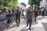 Panglima TNI Jenderal Andika Perkasa ( kiri) meninjau persiapan pengamanan untuk acara resepsi ngunduh mantu pernikahan putra bungsu Presiden Joko Widodo, Kaesang Pangarep dengan Erina Gudono, di Loji Gandrung, Solo, Jawa Tengah, Kamis (8/12/2022). Resepsi pernikahan Kaesang Pangarep dan Erina Gudono akan diselenggarakan di Pura Mangkunegaran, Solo, Jawa Tengah, Minggu (11/12/2022). ANTARA FOTO/Maulana Surya/pras.