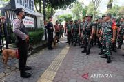 Panglima TNI Jenderal Andika Perkasa (kedua kanan) meminjau persiapan pengamanan untuk acara resepsi ngunduh mantu pernikahan putra bungsu Presiden Joko Widodo, Kaesang Pangarep dengan Erina Gudono, di Loji Gandrung, Solo, Jawa Tengah, Kamis (8/12/2022). Resepsi pernikahan Kaesang Pangarep dan Erina Gudono akan diselenggarakan di Pura Mangkunegaran, Solo, Jawa Tengah, Minggu (11/12/2022). ANTARA FOTO/Maulana Surya/pras.