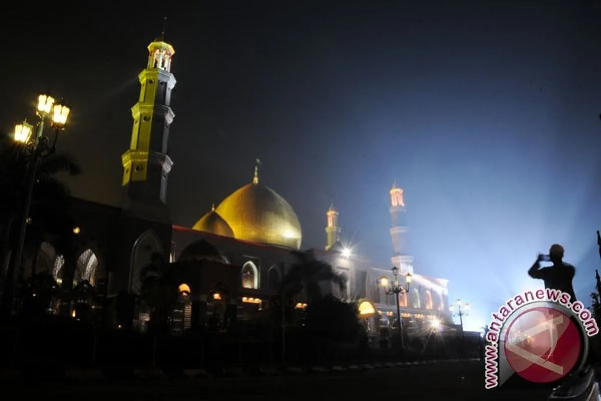 Sejumlah umat muslim mengunjungi Masjid Kubah Emas, Jalan meruyung, Depok, Jawa Barat, saat Tabligh Akbar, Rabu (25/7) malam. Tabligh yang diisi tausiyah dari sejumlah ustad dihadiri ratusan muslim dari penjuru daerah. (FOTO ANTARA/Indrianto Eko Suwarso)