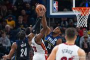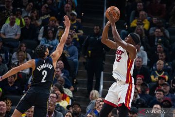 Pebasket Indiana Pacers Myles Turner (kedua kanan) menghadang serangan pebasket Miami Heat Bam Adebayo (kedua kiri) dalam laga lanjutan NBA, di Gainbridge Fieldhouse, Indianapolis, Indiana, Amerika Serikat, Senin (12/12/2022). Miami Heat berhasil mengalahkan Indiana Pacers 87-82. ANTARA FOTO/Reuters-Trevor Ruszkowski-USA TODAY Sports/hp.