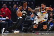 Pebasket Los Angeles Clippers Reggie Jackson (1) berebut bola dengan pebasket Minnesota Timberwolves Wendell Moore Jr. (7) pada pertandingan NBA di Crypto.com , Los Angeles, California, AS (14/12/2022). ANTARA FOTO/Gary A. Vasquez-USA TODAY Sports via Reuters/aww.