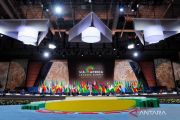 Suasana ruangan pertemuan saat Presiden Amerika Serikat (AS) Joe Biden menyampaikan pidatonya saat sesi penutupan KTT AS-Afrika di Washington DC, Amerika Serikat, Kamis (15/12/2022). ANTARA FOTO/REUTERS/Ken Cedeno/wsj.