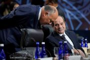 Presiden Mesir Abdel Fattah al-Sisi (kanan) berbincang dengan Menteri Luar Negeri Sameh Shoukry di sela-sela menghadiri sesi penutupan KTT AS-Afrika di Washington DC, Amerika Serikat, Kamis (15/12/2022). ANTARA FOTO/REUTERS/Ken Cedeno/wsj.