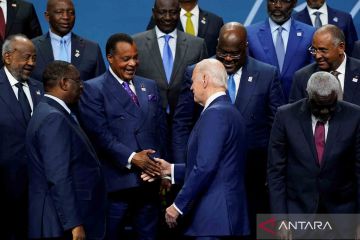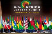 Presiden Amerika Serikat (AS) Joe Biden dan para pemimpin negara lainnya berpose saat sesi foto bersama KTT AS-Afrika di Washington DC, Amerika Serikat, Kamis (15/12/2022). ANTARA FOTO/REUTERS/Ken Cedeno/wsj.