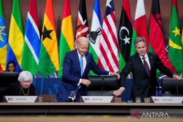 Presiden Amerika Serikat (AS) Joe Biden (tengah) didampingi Menteri Luar Negeri Antony Blinken (kanan) dan Menteri Keuangan Janet Yellen (kiri) menghadiri sesi penutupan KTT AS-Afrika di Washington DC, Amerika Serikat, Kamis (15/12/2022). ANTARA FOTO/REUTERS/Ken Cedeno/wsj.