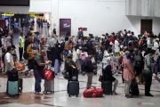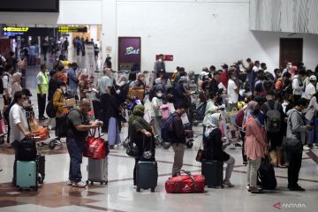 Calon penumpang pesawat antre di area lapor diri sebelum melakukan penerbangan di Bandara Internasional Juanda Surabaya di Sidoarjo, Jawa Timur, Senin (19/12/2022). Pengelola Bandara Juanda memprediksi puncak arus penumpang saat libur Natal dan Tahun Baru 2023 terjadi pada 24 Desember 2022 dengan jumlah 33 ribu orang penumpang dan 238 pergerakan pesawat. ANTARA FOTO/Umarul Faruq/foc.