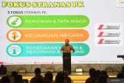 Ketua KPK Firli Bahuri berpidato saat acara peluncuran Strategi Nasional Aksi Pencegahan Korupsi (Stranas PK) Tahun 2023-2024 di Jakarta, Selasa (20/12/2022). Stranas PK merupakan arah kebijakan nasional yang memuat fokus dan sasaran pencegahan korupsi dan akan menjadi acuan pemerintah pusat dan daerah untuk mewujudkan pemerintahan yang bebas dari korupsi. ANTARA FOTO/Akbar Nugroho Gumay/pras.