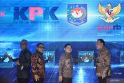 Ketua KPK Firli Bahuri (kanan) bersama Menteri PPN/Kepala Bappenas Suharso Monoarfa (kedua kanan), Menpan RB Abdullah Azwar Anas (kedua kiri) dan Stafsus Kantor Staf Presiden Arief Budhy Hardono (kiri) meluncurkan Strategi Nasional Aksi Pencegahan Korupsi (Stranas PK) Tahun 2023-2024 di Jakarta, Selasa (20/12/2022). Stranas PK merupakan arah kebijakan nasional yang memuat fokus dan sasaran pencegahan korupsi dan akan menjadi acuan pemerintah pusat dan daerah untuk mewujudkan pemerintahan yang bebas dari korupsi. ANTARA FOTO/Akbar Nugroho Gumay/pras .