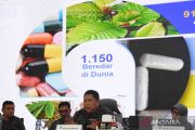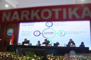 Kepala Badan Narkotika Nasional (BNN) Komjen Pol Petrus Reinhard Golose (tengah) didampingi perwakilan dari sejumlah organisasi antinarkotika internasional menunjukkan barang bukti narkotika hasil penangkapan bulan Desember 2022 disela penyampaian Laporan Kinerja Akhir Tahun BNN di gedung BNN, Jakarta, Kamis (29/12/2022). Sepanjang tahun 2022, BNN telah mengungkap 49 jaringan terdiri dari 26 jaringan nasional dan 23 jaringan internasional dengan mengungkap 768 kasus tindak pidana narkotika dan prekursor narkotika dan mengamankan tersangka sebanyak 1.209 orang. ANTARA FOTO/Indrianto Eko Suwarso/wsj.