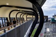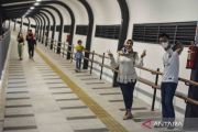 Sejumlah warga melintasi jembatan layang penyeberangan orang (skywalk) Stasiun Lebak Bulus Grab di Lebak Bulus, Jakarta, Kamis (29/12/2022). Jembatan layang sepanjang 307,5 meter yang menghubungkan Stasiun MRT Lebak Bulus Grab dengan gedung Poin Square tersebut mulai dapat digunakan sejak Kamis (29/12/2022). ANTARA FOTO/Sulthony Hasanuddin/wsj.