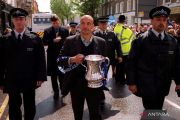 Pelatih Chelsea Gianluca Vialli (tengah) seraya membawa piala diapit dua petugas Polisi saat ia menuju Civic Reception untuk merayakan keberhasilan Chelsea menjuarai Piala FA tahun 2000, di Fulham Broadway, Inggris, 21 Mei 2000. Legenda sepak bola Italia yang juga staf pelatih Timnas Italia, Gianluca Vialli, meninggal dunia hari ini setelah bertarung melawan kanker yang dideritanya. ANTARA FOTO/Foto Arsip Reuters-David Slater/hp.