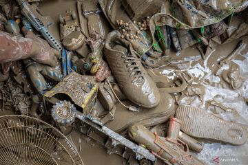 Sejumlah barang milik warga yang tersapu banjir dan lumpur pascabanjir bandang yang menerjang Perumahan Dinar Indah, Kelurahan, Meteseh, Kecamatan Tembalang, Semarang, Jawa Tengah, Sabtu (7/1/2023). Warga setempat membutuhkan perlengkapan tidur laik pakai seperti bantal, selimut, kasur, serta air bersih seusai banjir bandang yang menerjang permukiman mereka mencapai 2,5 meter pada Jumat (6/1) sore akibat luapan Sungai Babon-Pengkol yang tak mampu menampung debit air hujan berintensitas tinggi serta adanya tanggul jebol. ANTARA FOTO/Aji Styawan/foc.