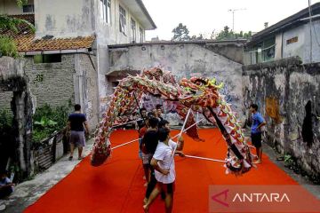 Sejumlah anggota Naga Merah Putih Bogor mengikuti latihan tari naga untuk pertunjukan Tahun Baru Imlek mendatang di Bogor, Provinsi Jawa Barat, Rabu (11/1/2023). ANTARA FOTO/Xinhua/Sandika Fadilah/rwa.