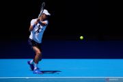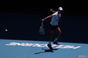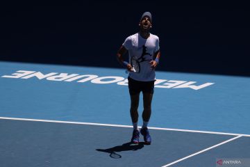 Petenis Serbia Novak Djokovic mengembalikan bola saat melalukan latihan jelang Australian Open, di Melbourne Park, Melbourne, Australia, Sabtu (14/1/2023). ANTARA FOTO/Reuters-Sandra Sanders/hp.