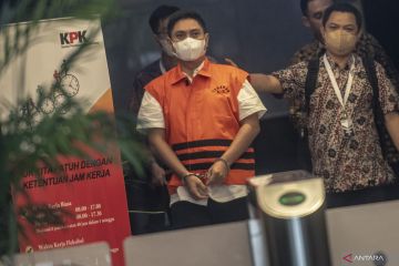Terdakwa kasus gratifikasi pemberian izin usaha pertambangan (IUP) Mardani H. Maming (kiri) berjalan menuju mobil tahanan usai menjalani sidang lanjutan secara virtual di Gedung Merah Putih KPK, Jakarta, Rabu (25/1/2023). Sidang lanjutan tersebut beragendakan mendengarkan keterangan saksi. ANTARA FOTO/Muhammad Adimaja/hp.