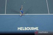 Petenis Serbia Novak Djokovic berselebrasi usai memenangi pertandingan melawan petenis Amerika Serikat Tommy Paul pada semifinal Australia Open di Melbourne Park, Melbourne, Australia, Jumat (27/1/2023). Djokovic menang atas Tommy Paul 7-5, 6-1 dan 6-2. ANTARA FOTO/REUTERS/Loren Elliott/rwa.