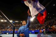 Petenis Serbia Novak Djokovic berselebrasi usai memenangi pertandingan melawan petenis Amerika Serikat Tommy Paul pada semifinal Australia Open di Melbourne Park, Melbourne, Australia, Jumat (27/1/2023). Selanjutnya Djokovic ditunggu petenis Yunani Stefanos Tsitsipas pada final Australia Open 2023 yang akan berlangsung Minggu (29/1/2023). ANTARA FOTO/REUTERS/Jaimi Joy/rwa.