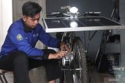Brilly Eldon Fachrudin menunjukkan purwarupa sepeda bertenaga surya hasil inovasinya di Malang, Jawa Timur, Sabtu (28/1/2023). Purwarupa sepeda bertenaga surya hasil inovasi tersebut mampu dikendarai tanpa dikayuh dengan kecepatan 25 kilometer per jam sejauh 12 kilometer pada malam hari serta memiliki fitur konektor kabel isi ulang gawai. ANTARA FOTO/Ari Bowo Sucipto/foc.