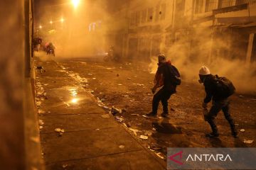 Pengunjuk rasa melakukan protes untuk menuntut Presiden Peru Dina Boluarte mundur, di Lima, Peru, (28/1/2023). ANTARA FOTO/REUTERS/Sebastian Castaneda/aww.