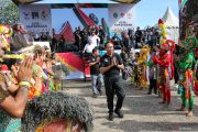 Menteri Pemuda dan Olahraga (Menpora) Zainudin Amali (tengah) berjalan usai peluncuran PON XXI Aceh-Sumut 2024 di Lapangan Astaka Pancing, Kota Medan, Sumatera Utara, Minggu (29/1/2023). Peluncuran logo, maskot Matra (Harimau Sumatera) dan "tagline" Bersatu Kita Juara untuk PON XXI Aceh-Sumut 2024 tersebut menjadi tanda dimulainya titik awal pelaksanaan agenda olahraga empat tahunan itu. ANTARA FOTO/Yudi/Lmo/hp.