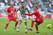 Pesepak bola Juventus Angel Di Maria (tengah) dihadang pesepak bola Monza Nicolo Rovella (kanan) dalam laga lanjutan Liga Italia, di Stadion Allianz Stadium, Turin, Italia, Minggu (29/1/2023). Juventus kalah dari tamunya Monza 0-2. ANTARA FOTO/Reuters-Massimo Pinca/hp.