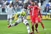 Pesepak bola Juventus Moise Kean (kedua kanan) berebut bola dengan pesepak bola Monza Pablo Mari (kanan) dalam laga lanjutan Liga Italia, di Stadion Allianz Stadium, Turin, Italia, Minggu (29/1/2023). Juventus kalah dari tamunya Monza 0-2. ANTARA FOTO/Reuters-Massimo Pinca/hp.