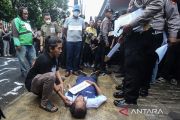 Sejumlah polisi melakukan rekonstruksi kecelakaan di Jalan Srengseng Sawah, Jagakarsa, Jakarta Selatan, Kamis (2/2/2023). Polda Metro Jaya menggelar rekonstruksi kecelakaan yang menewaskan mahasiswa UI Mohammad Hasya yang dijadikan tersangka dan melibatkan terduga penabrak purnawirawan Polri AKBP Eko Setio Budi dengan menghadirkan sembilan saksi serta melibatkan para pakar hingga kolaborasi interprofesi. ANTARA FOTO/Asprilla Dwi Adha/nym.